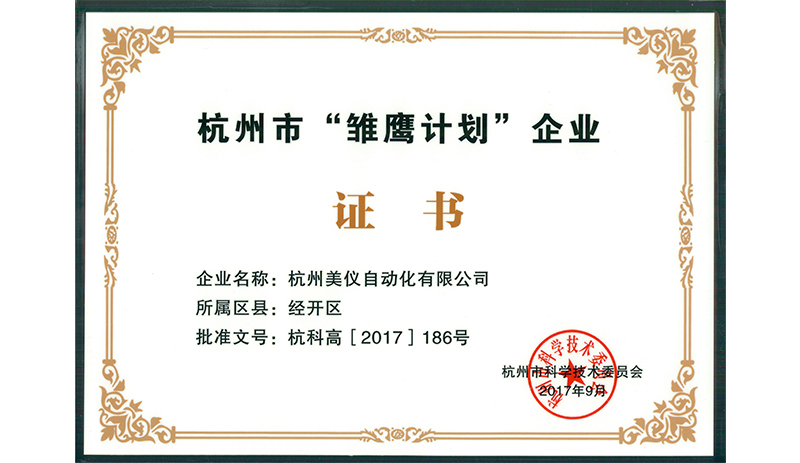 杭州w66最给力自动化技术有限公司被杭州市政府列为第一批“雏鹰计划”重点科技型企业!