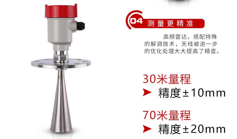 l 波束角小,能量集中,具有更强抗干扰能力,大大提高了测量精度和可靠性