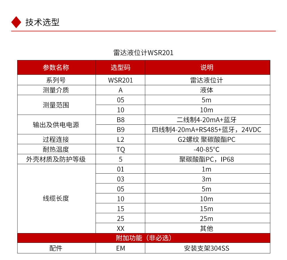 WSR310雷达液位计是调频连续波(FMCW)雷达产品,可以对工业生产过程中封闭式或敞开容器中液体的高度进行非接触式连续测量。 检测距离远,波束能量低,可安装于各种金属、非金属容器或管道内。雷达液位计对人体及环境均无伤害,还具有不受介质比重的影响、不受介电常数变化的影响、不需要现场校调等优点。